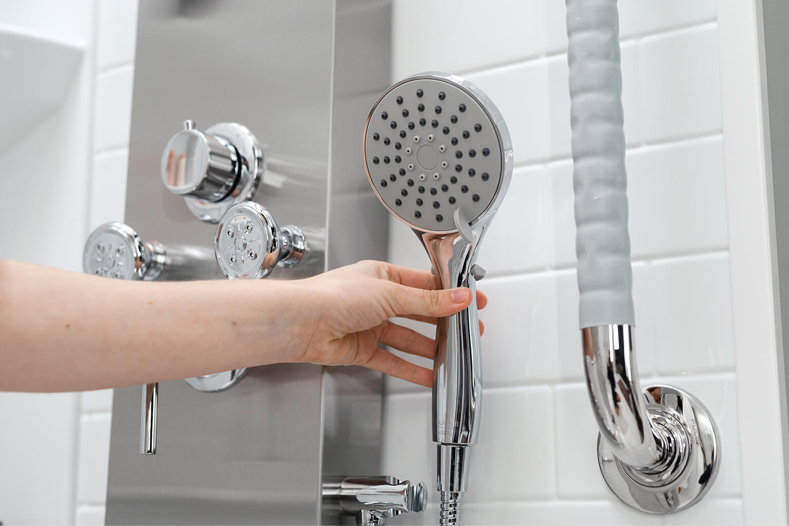 - When you are finished using your shower, rinse all surfaces with warm water using the shower wand. This helps prevent buildup of soap scum, bacteria, minerals and other residue.