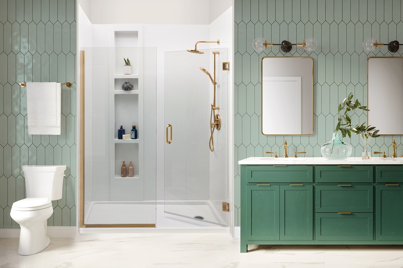 - 5 wall colors and 3 tile accent options